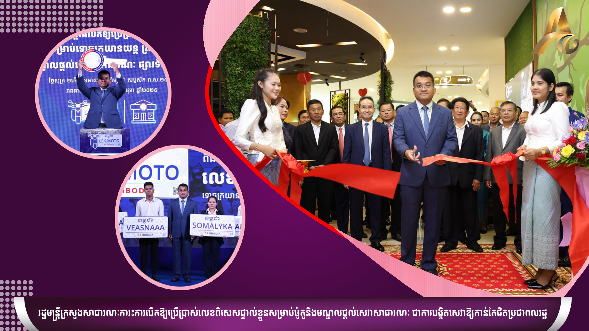 ភ្នំពេញ ថ្ងៃទី២៧ ខែមិថុនា ឆ្នាំ២០២៥ -- រដ្ឋមន្ត្រីក្រសួងសាធារណការ និងដឹកជញ្ជូន បានថ្លែងថា ចំពោះការបើកឱ្យប្រើប្រាស់លេខដែលចុះបញ្ជីជាលេខពិសេសផ្ទាល់ខ្លួន សម្រាប់ទោចក្រយានយន្ត ត្រីចក្រ យានយន្ត និងម៉ូតូកង់បួន និងមណ្ឌលផ្តល់សេវាសាធារណៈផ្សារទំនើបអូឡាំព្យា ជាការបង្កើតជម្រើសសេវាថ្មីៗបន្ថែម និងបង្ខិតសេវាឱ្យកាន់តែជិតប្រជាពលរដ្ឋ ស្របតាមចក្ខុវិស័យ និងយុទ្ធសាស្ត្របញ្ចកោណរបស់រាជរដ្ឋាភិបាល។