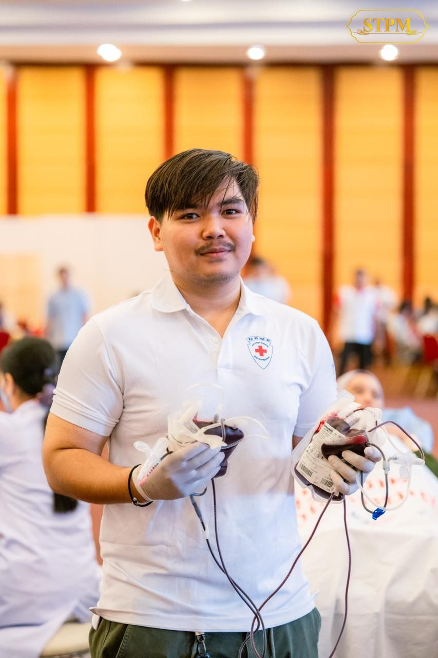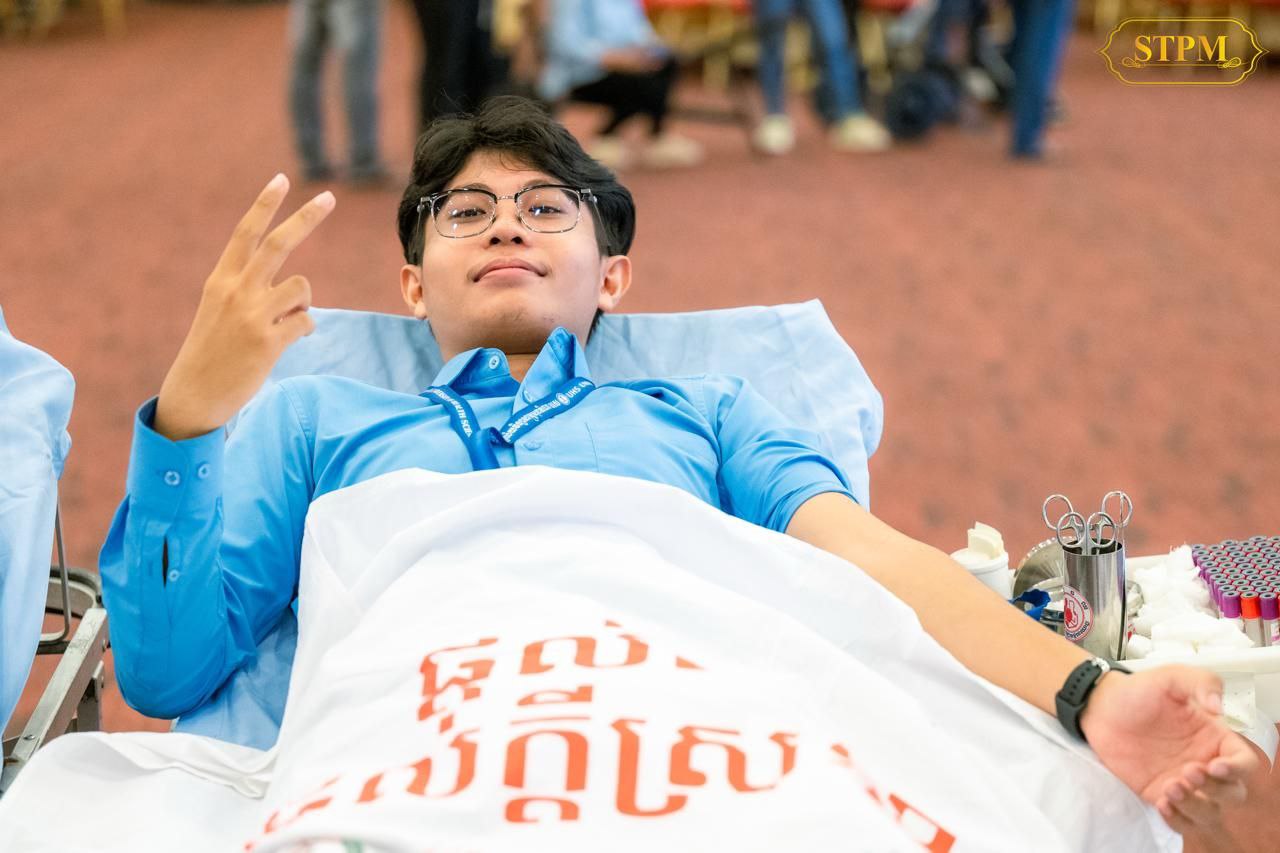 Throughout the day, the center was filled with the determined spirit of community. Students from the Association of Samdech Techo Scholarship (AMT), members of the Union of Youth Federations of Cambodia (UYFC), and everyday citizens came together, their sleeves rolled up, eager to contribute. As they donated blood, they understood that their act could save lives—whether in hospitals or on the battlefield.