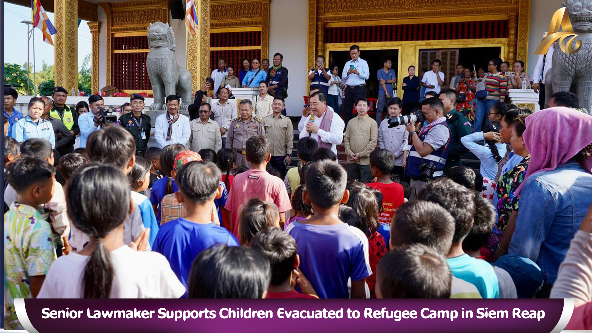 Siem Reap, August 02, 2025 - A senior Cambodian lawmaker offered encouragement Saturday to hundreds of children evacuated to a refugee centre at a Buddhist temple in Sot Nikum district in Siem Reap.