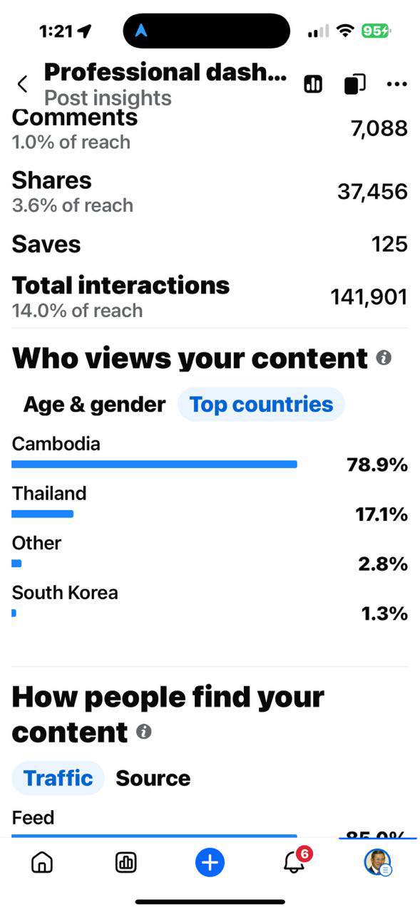 Techo Hun Sen further disclosed that engagement spikes when he posts about sensitive or controversial topics. In particular, posts related to the use of slingshots as weapons attracted the highest percentage of Thai viewers, reaching 17.1%. He observed that, with each post, he often encounters disruptive comments from Thai individuals, some of which are in Thai and English, aimed at disparaging Cambodia.