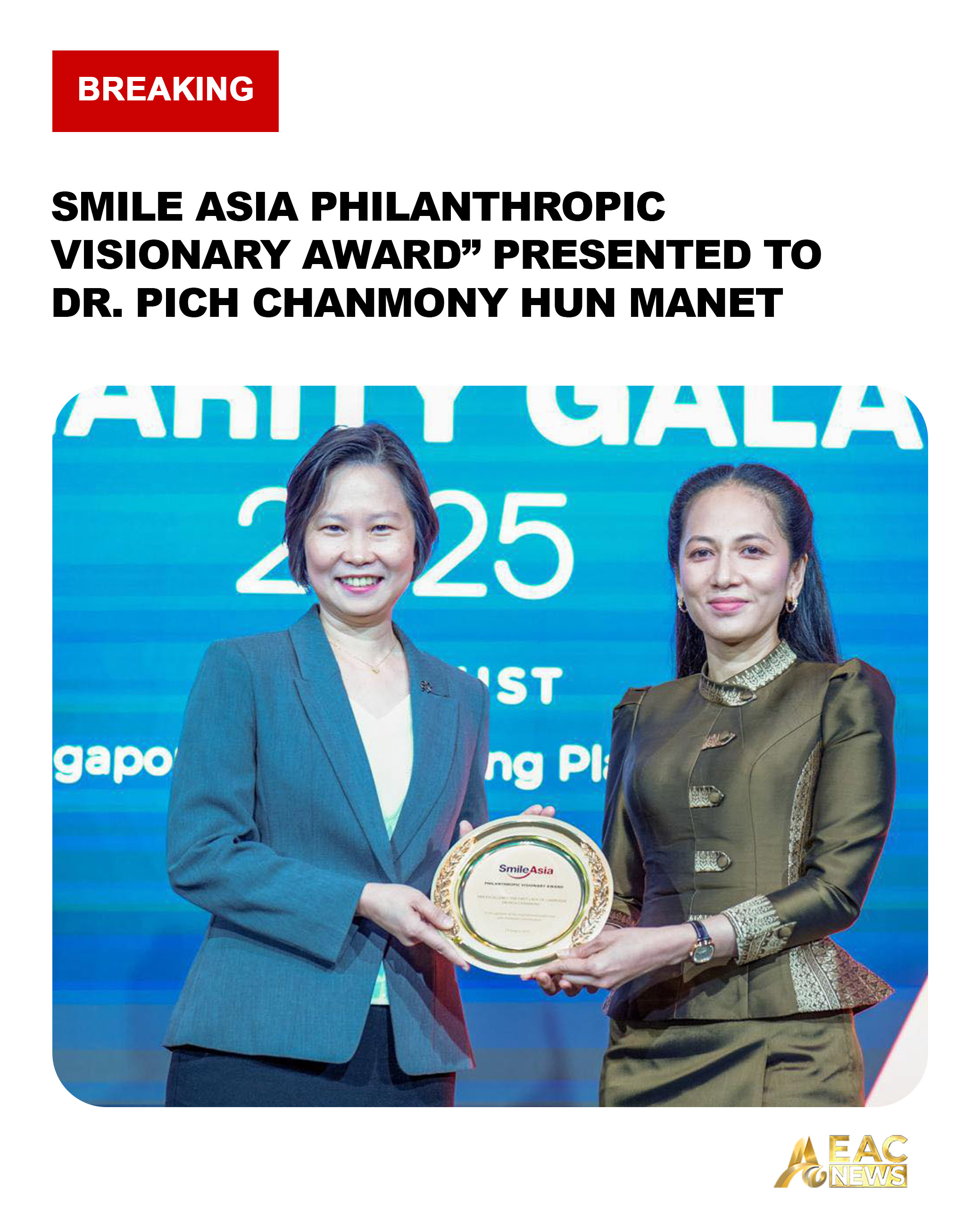 Singapore, August 14, 2025 — On August 14, 2025, during the “Smile Asia Charity Gala,” Dr. Pich Chanmony Hun Manet was honored with the second annual “Smile Asia Philanthropic Visionary Award.” The award was personally presented by Gan Siow Huang, Singapore’s Minister for Foreign Affairs, Trade, and Industry, in recognition of her outstanding contributions to healthcare and social development.