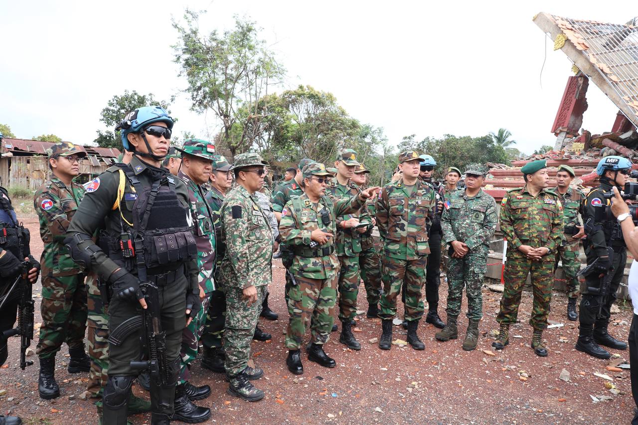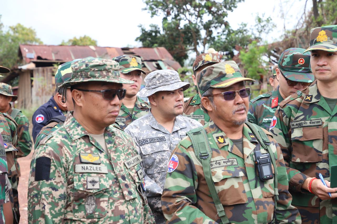 Preah Vihear Province, August 15, 2025 — On Friday, 15 August 2025, a seven-nation Interim Observer Team (IOT) conducted an important observation visit to the An Ses Border Checkpoint in Preah Vihear Province, Cambodia. The team was led by Colonel Nazlee bin Abdul Rahim, Malaysian Defence Attaché to the Kingdom of Cambodia, and included both resident and non-resident Defence Attachés from Malaysia, Brunei, Indonesia, Lao PDR, Myanmar, the Philippines, and Vietnam.
