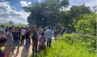 រូបថតប្រជាពលរដ្ឋ និងសមត្ថកិច្ចកម្ពុជាដែលគ្មានអាវុធ ទប់ស្កាត់ ទាហានថៃដែលព្យាយាមរាយបន្លាលួស នៅភូមិជោគជ័យ ឃុំអូរបីជាន់ ស្រុកអូរជ្រៅ ខេត្តបន្ទាយមានជ័យ