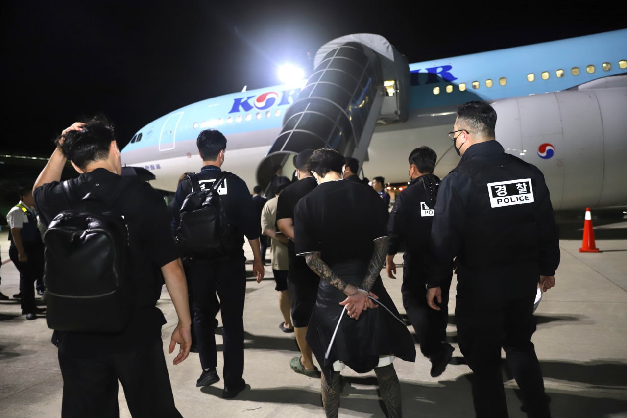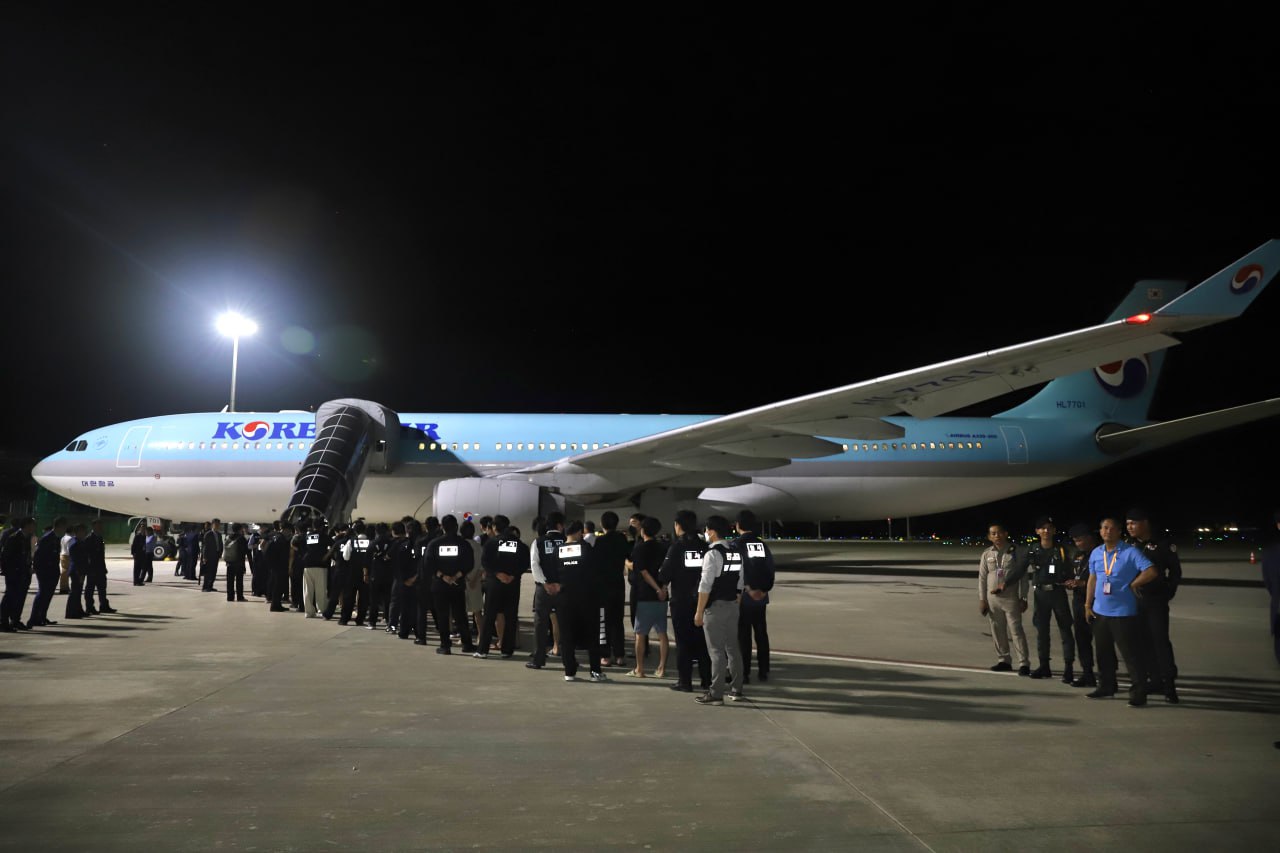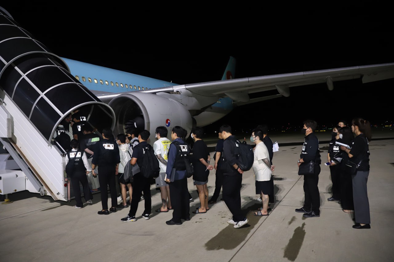 ភ្នំពេញ៖ មន្ត្រីនៃអគ្គនាយកដ្ឋានអន្តោប្រវេសន៍ នៃក្រសួងមហាផ្ទៃប្រទេស កម្ពុជានៅយប់ថ្ងៃទី១៧ ខែតុលា ឆ្នាំ២០២៥ បានបញ្ចូនជនជាតិកូរ៉េសរុបចំនួន ៦៤នាក់ ក្នុងនោះមានស្ត្រីចំនួន៥នាក់ ដែលជាប់ពាក់ព័ន្ធនឹងការឆបោកតាម ប្រព័ន្ធបច្ចេកវិទ្យា ឱ្យត្រឡប់ទៅប្រទេសដើមរបស់ពួកគេវិញ ដើម្បីឱ្យរដ្ឋាភិបាលសាធារណរដ្ឋកូរ៉េ ចាត់វិធានការ និងអនុវត្តនីតិវិធីបន្ត។