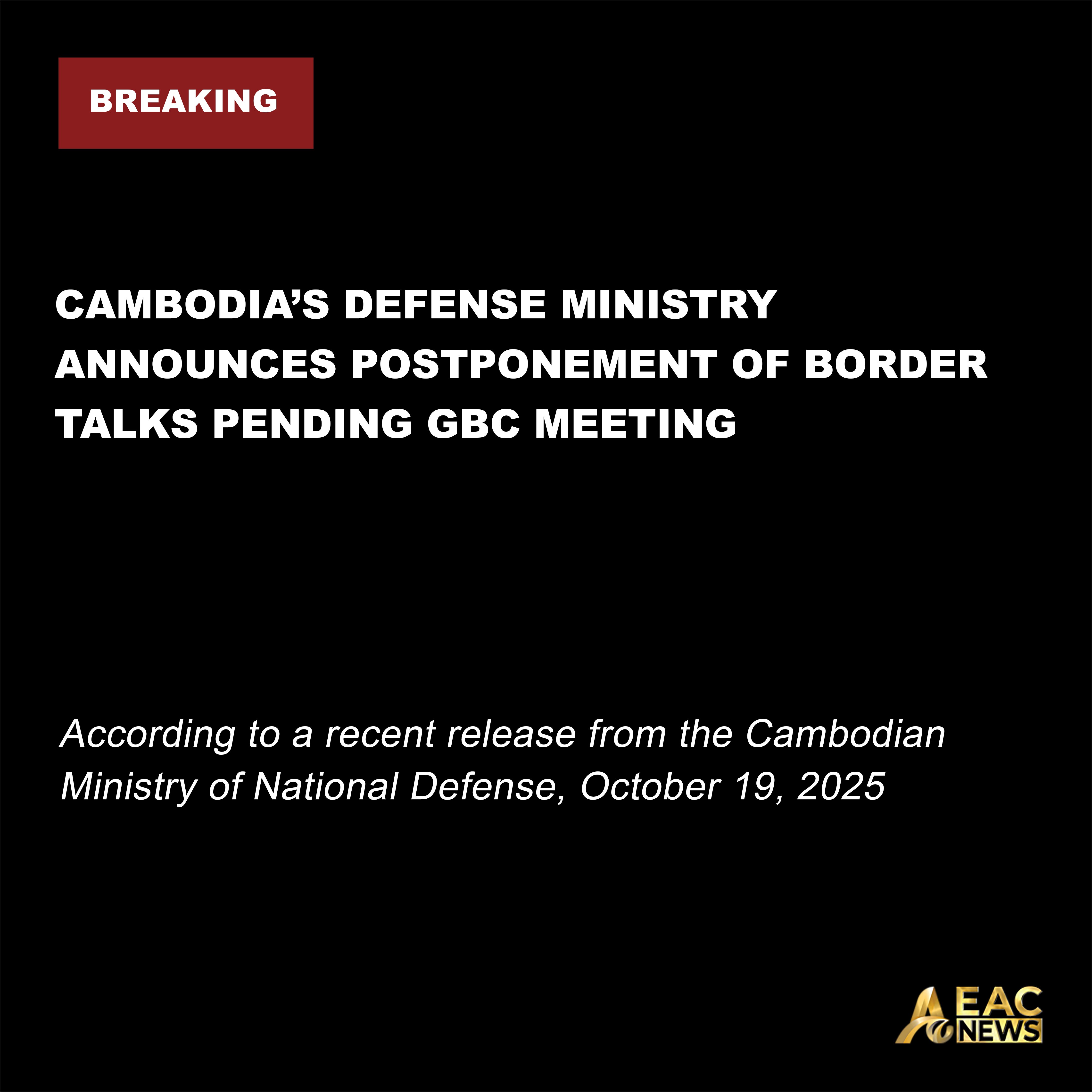 The Ministry of National Defence of Cambodia announced that on October 19, 2025, the 4th and 5th Military Regions of the Royal Cambodian Armed Forces sent formal letters to the Thai 1st and 2nd Army Areas concerning upcoming Cambodia-Thailand Regional Border Committee (RBC) meetings. The Cambodian side expressed its willingness to proceed with the scheduled discussions but requested a postponement until after the conclusion of the 2nd Special Meeting of the Cambodia-Thailand General Border Committee (GBC), set to take place in Kuala Lumpur, Malaysia, from October 20 to 23, 2025.